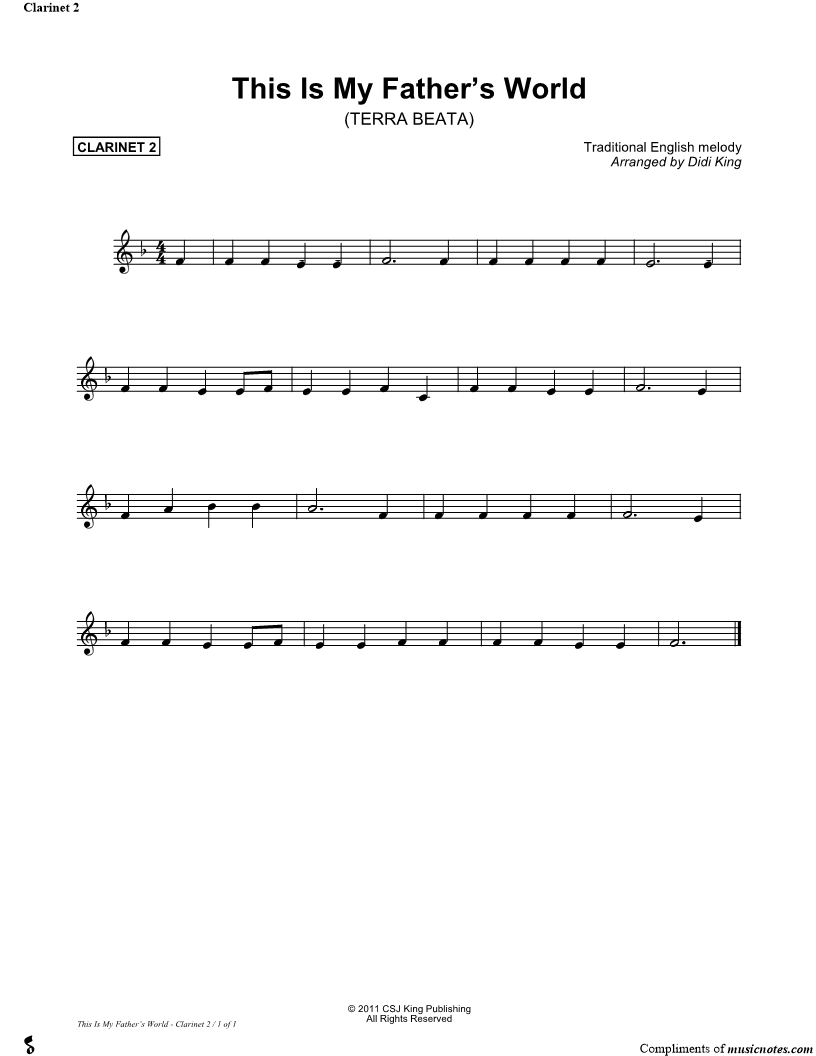 This Is My Father's World - Clarinet Part 2 (Clarinet Quartet) |