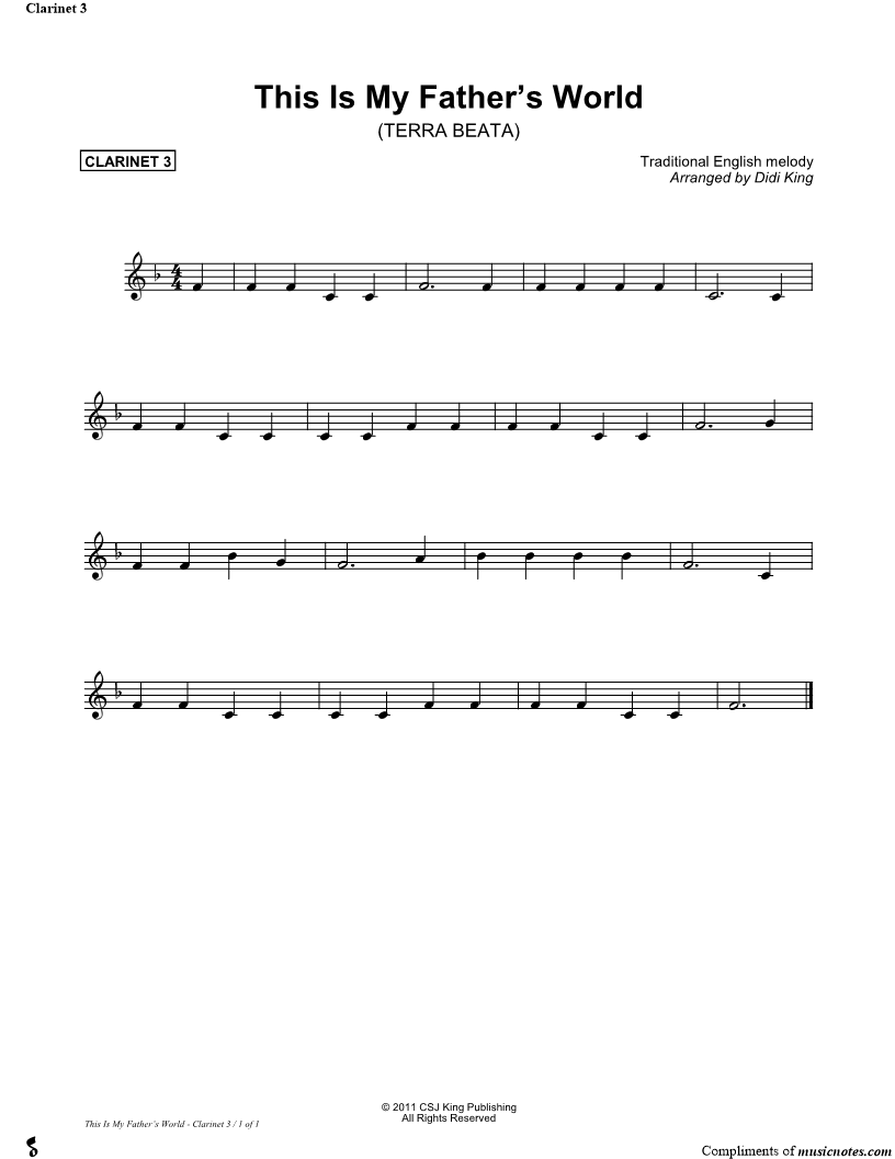This Is My Father's World - Clarinet Part 3 (Clarinet Quartet) |