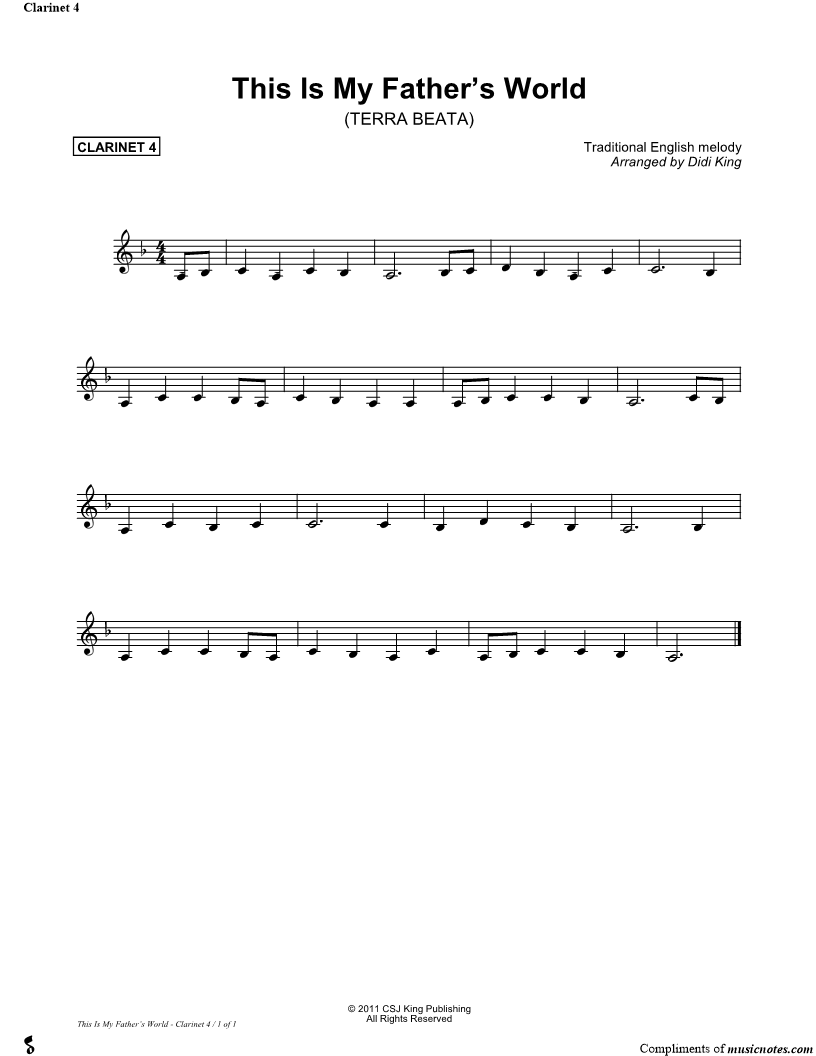 This Is My Father's World - Clarinet Part 4 (Clarinet Quartet) |