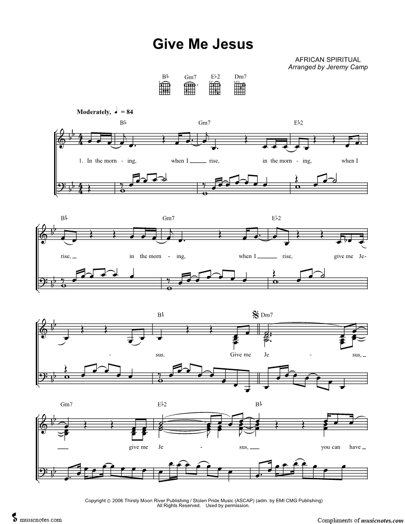 In the morning, whenI rise, in the morning, when I rise, in the morning, when I rise, give me Jesus. |