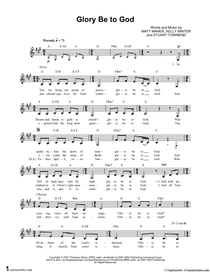 To You we bring our hymn of praise— glory be to God. |