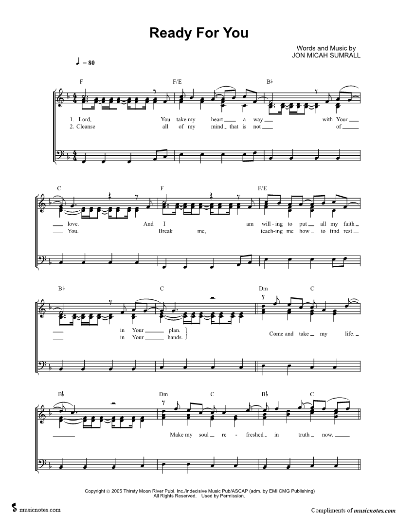 Many of the arrangements on Musicnotes have transpositions available, typically in C Major, as well as 3 sharps and 3 flats. If you do not see your desired key, you can request a transposition by reaching out to Customer Support.