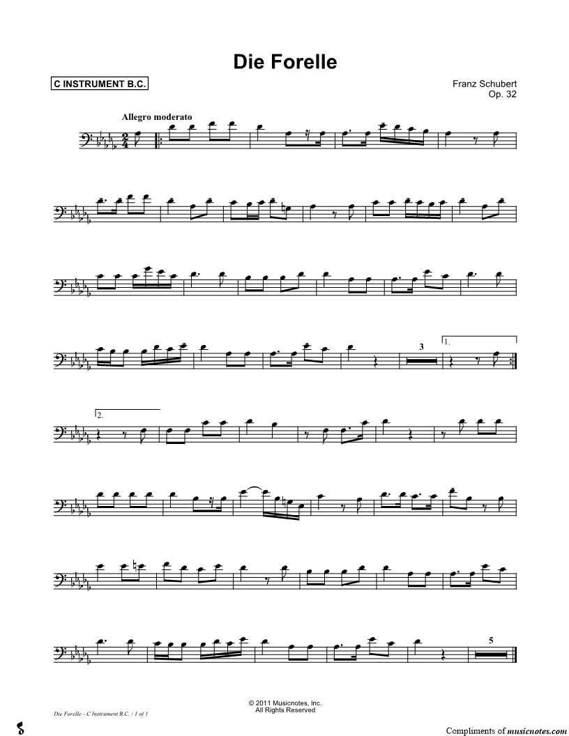 Die Forelle (The Trout) - Bass Clef Instrument |