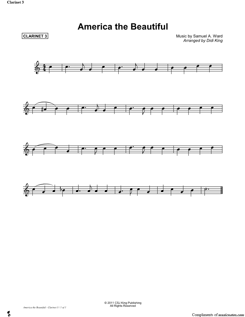America the Beautiful - Clarinet 3 Part (Clarinet Quartet) |