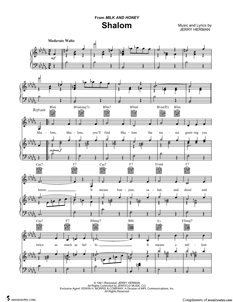 Shalom, Shalom, you'll find Shalom the nicest greeting you know; |