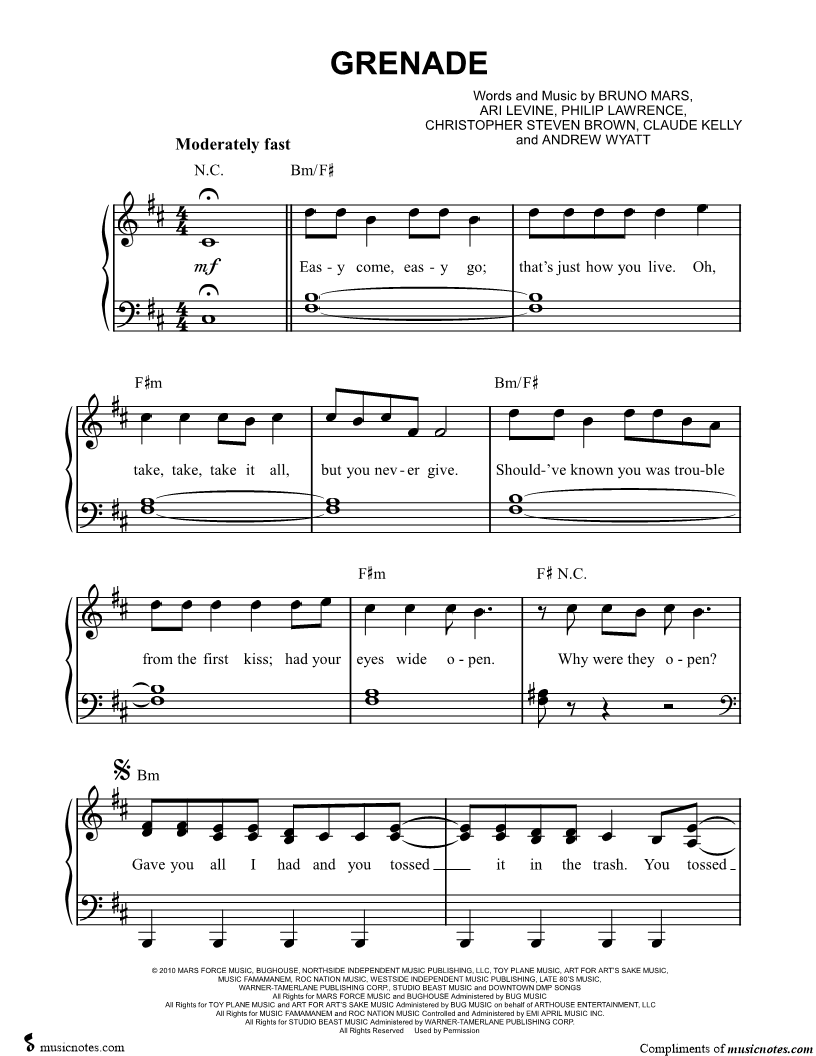 Bruno Mars - Doo-Wops & Hooligans - Easy Piano |
