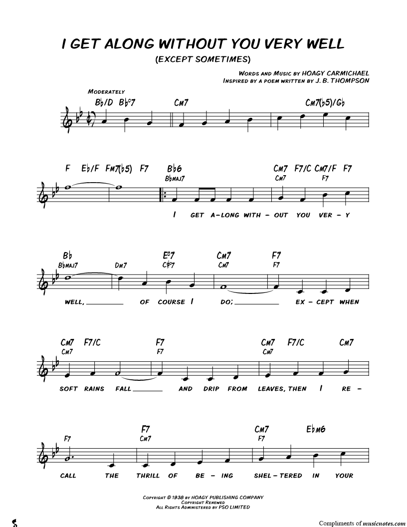 I get along without you very well, of course I do; except when soft rains fall and drip from leaves, then I recall the thrill of being sheltered in your arms, of course I do. |