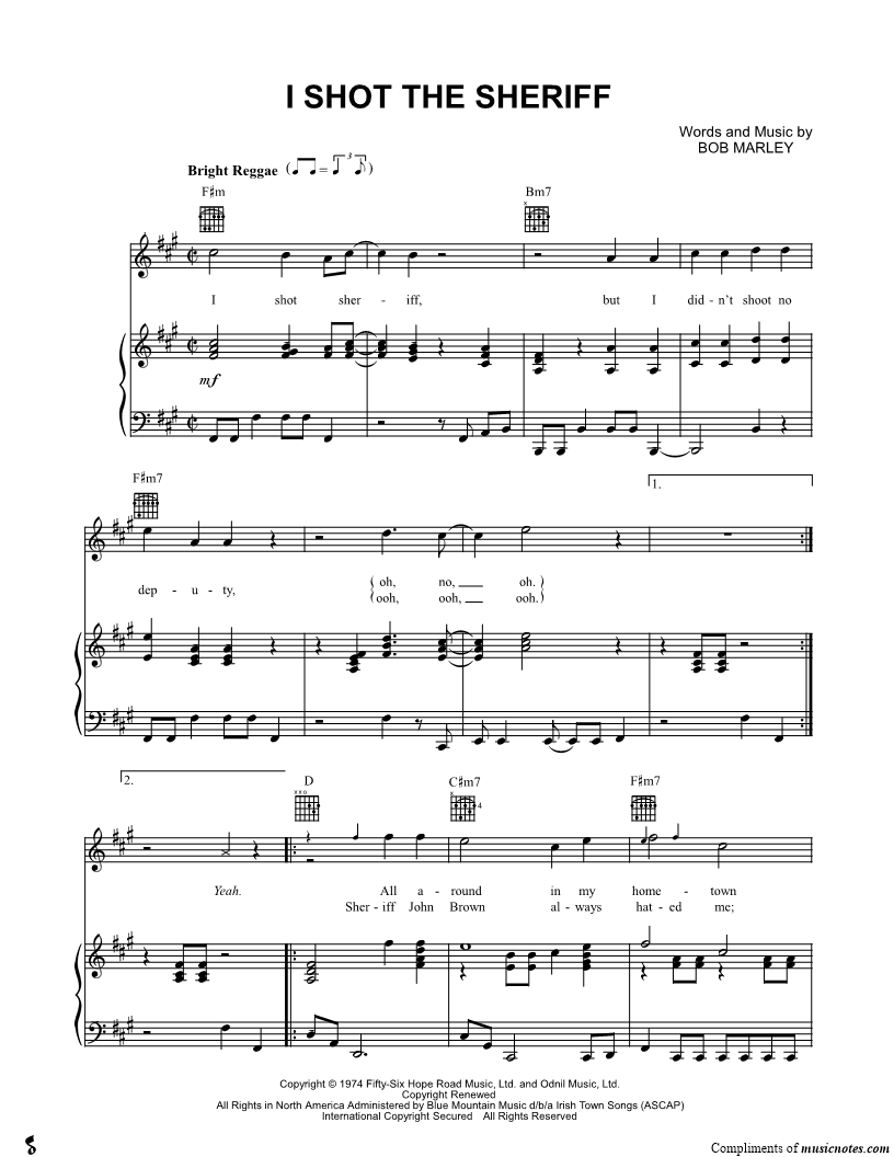 I shot sheriff, but I didn't shoot no deputy, oh, no, oh. |