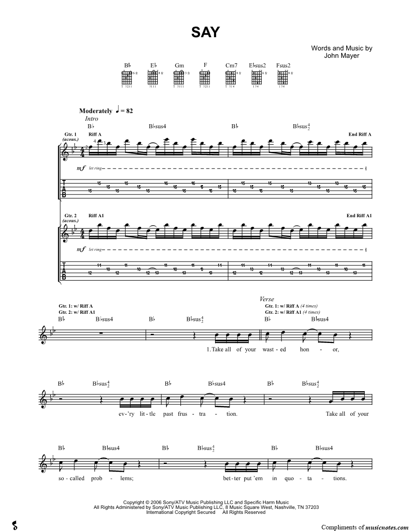 Guitar Tab Guitar/Vocal |