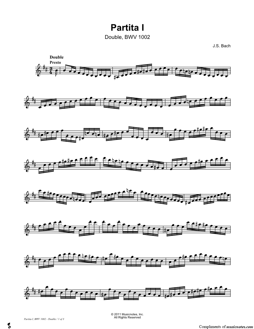 Partita I, BWV 1002 from Sonatas and Partitas for solo violin