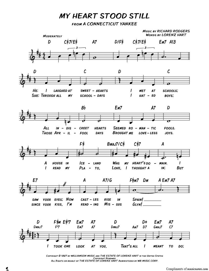 Leadsheets typically only contain the lyrics, chord symbols and melody line of a song and are rarely more than one page in length. Musicians will often use these skeletons to improvise their own arrangements. Leadsheets often do not contain complete lyrics to the song.