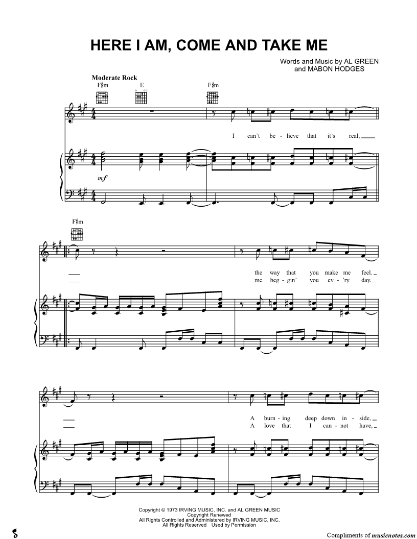 Musicnotes sells a wide variety of digital sheet music products including Singer Pros, Beginner Notes, Choral music, Piano Solos, Lead Sheets, Piano/Vocal/Guitar, Solo and Accompaniment, and fretted instrument tablature.