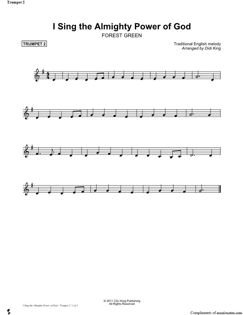 I Sing the Almighty Power of God - Brass Quartet Forest Green