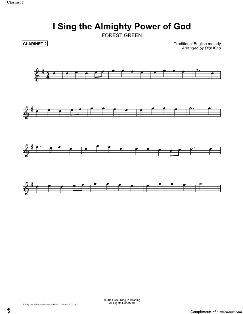 I Sing the Almighty Power of God - Clarinet 2 (Clarinet Quartet) |