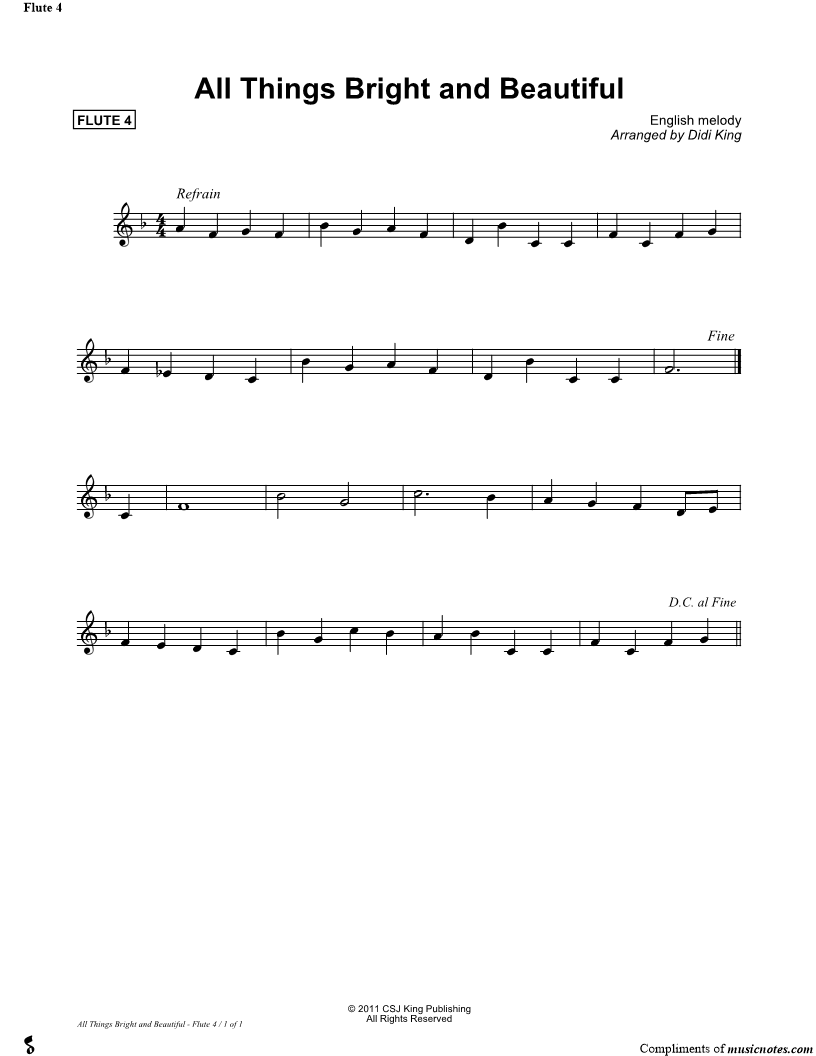 All Things Bright and Beautiful - Flute 4 (Flute Quartet) |