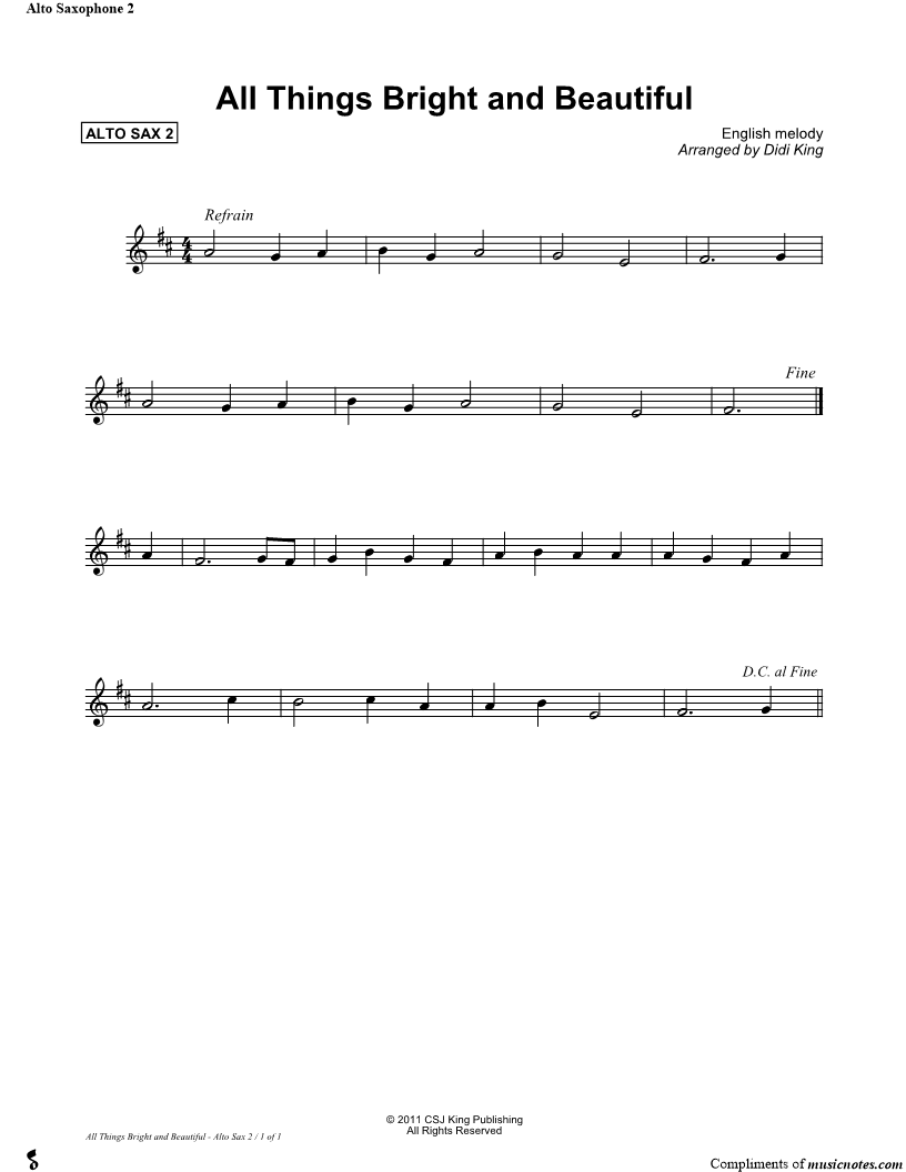 All Things Bright and Beautiful - Alto Sax 2 (Saxophone Quartet) |