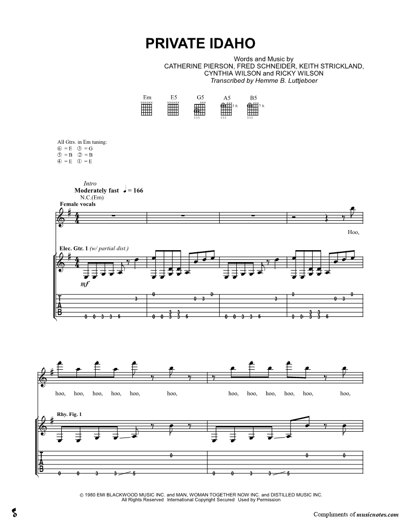 Guitar TAB Guitar/Vocal |