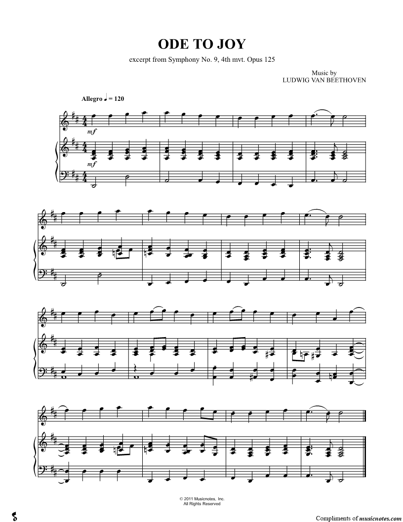 Ode To Joy (Excerpt) - C Instrument & Piano from Symphony No. 9, 4th mvt. Opus 125