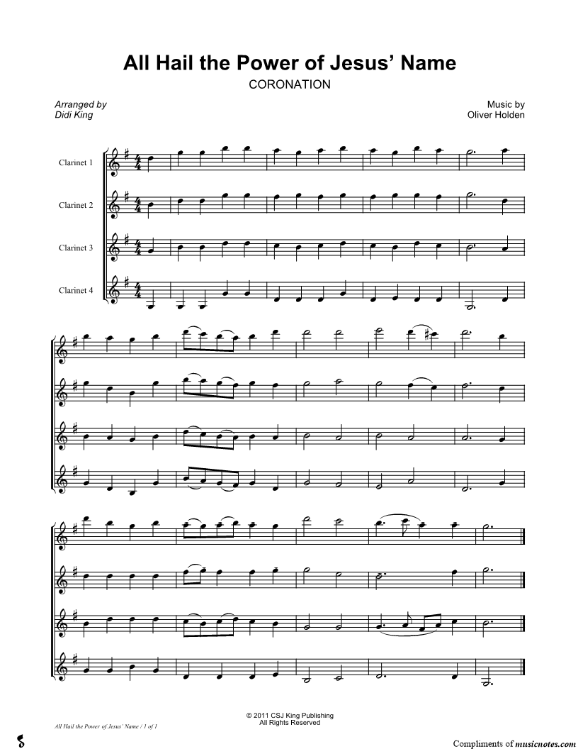 All Hail the Power of Jesus' Name - Score (Clarinet Quartet) |