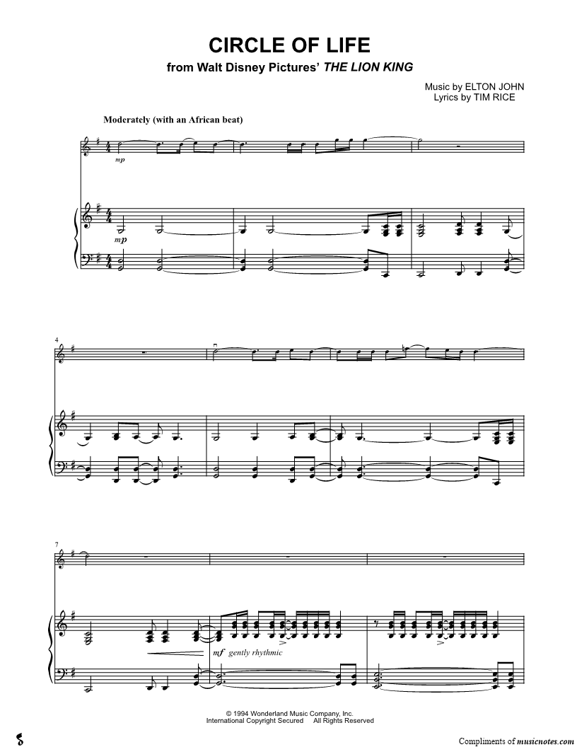 Circle of Life - Piano Accompaniment (Strings) |
