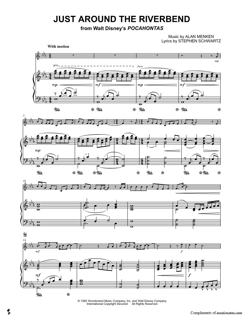 Just Around the Riverbend - F Horn & Piano from Walt Disney's Pocahontas