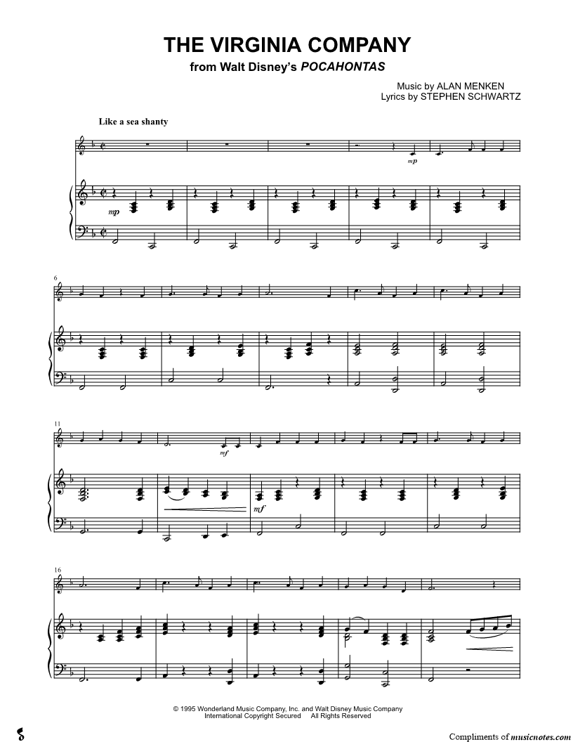 The Virginia Company - Trumpet & Piano Accompaniment from Walt Disney's Pocahontas