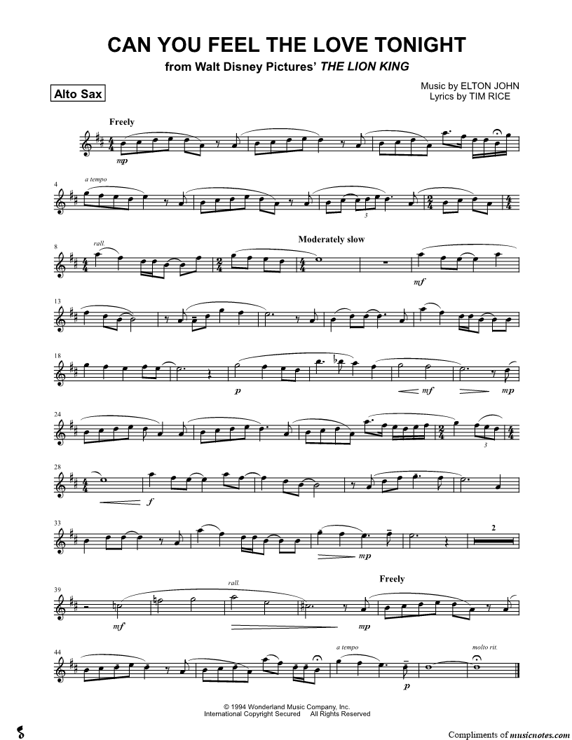 Can You Feel the Love Tonight - Alto Sax & Piano from Walt Disney Pictures' The Lion King
