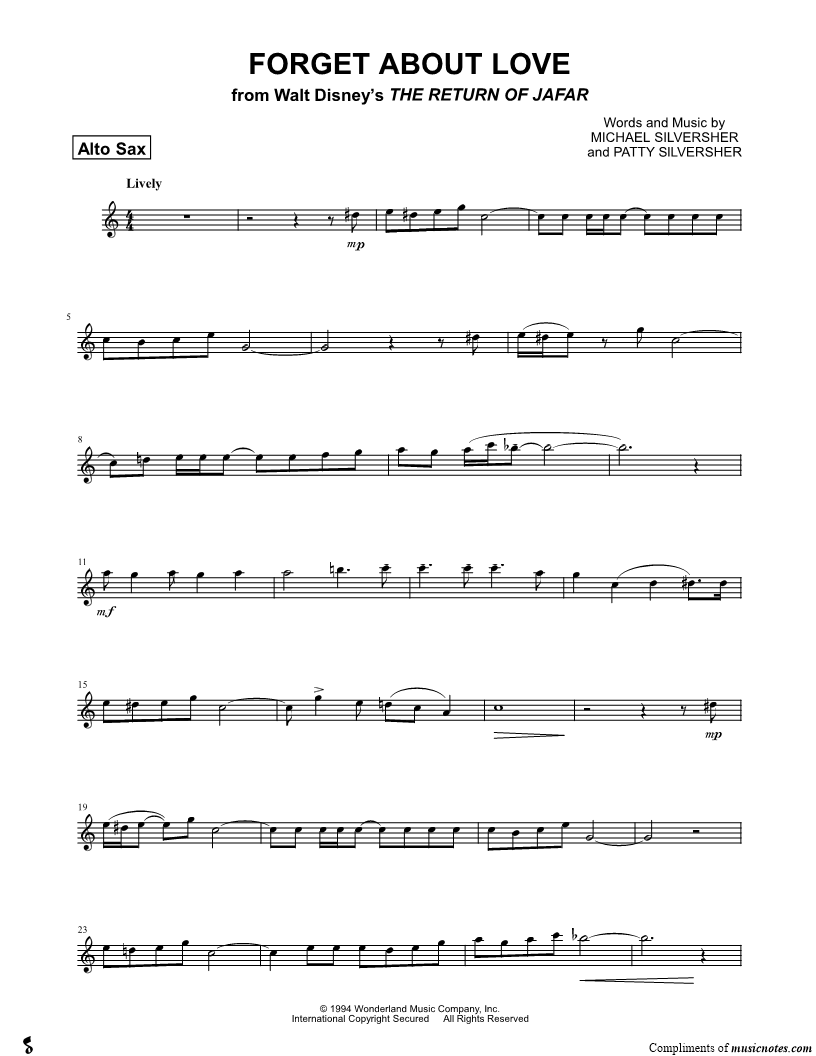 Forget About Love - Alto Saxophone & Piano Accompaniment from Walt Disney's The Return Of Jafar