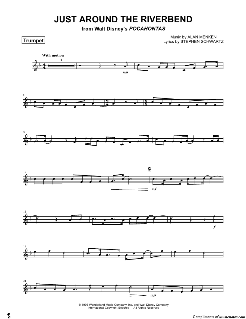 Just Around the Riverbend - Trumpet & Piano from Walt Disney's Pocahontas