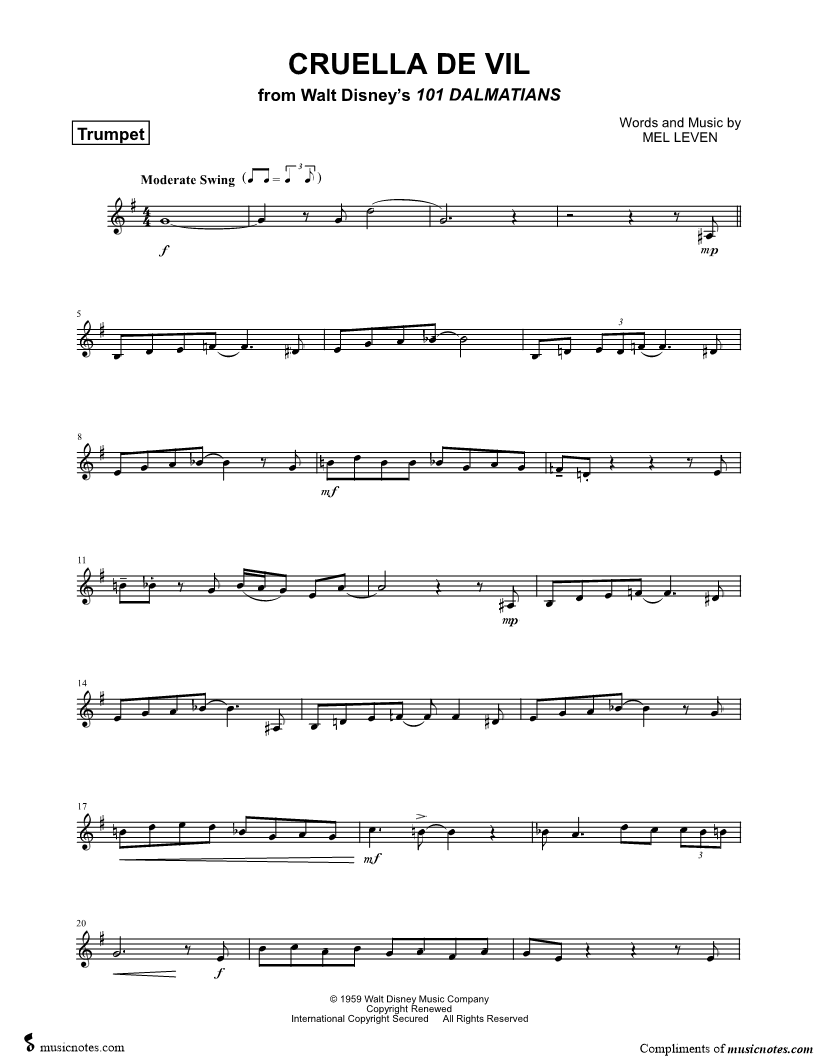 Cruella de Vil - Trumpet & Piano from Walt Disney's 101 Dalmatians