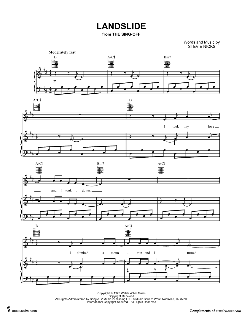 "Landslide is in E major and should be in Eflat major to match album. I like to play piano..." Read reviews
