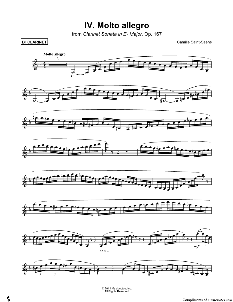 Clarinet Sonata in Eb Major, Op. 167: IV. Molto Allegro - Clarinet Part |