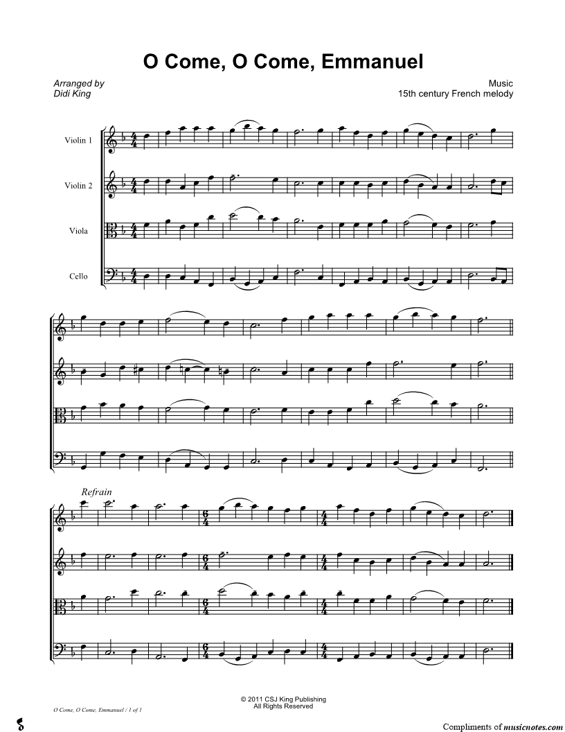 O Come, O Come, Emmanuel - String Quartet Score |