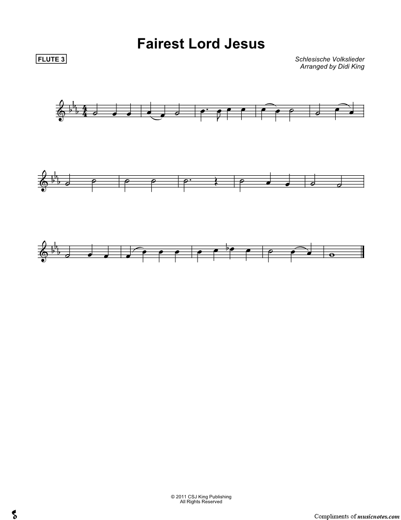 Fairest Lord Jesus - Flute 3 (Flute Quartet) |