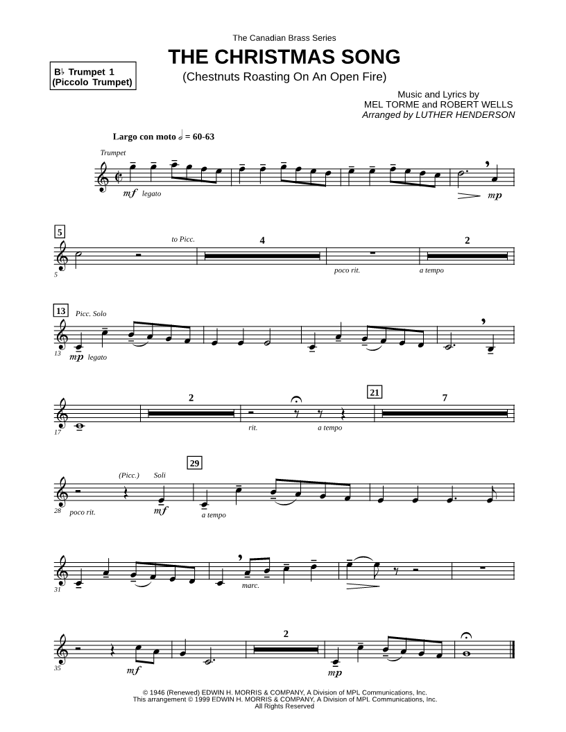 The Christmas Song (Chestnuts Roasting on an Open Fire) - Trumpet 1 (Brass Quintet) |