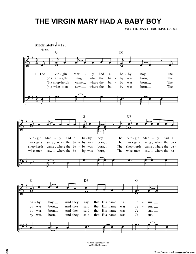 The Virgin Mary had a baby boy, |