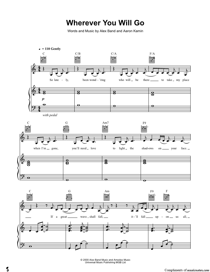 So lately, been wond'ring who will be there to take my place when I'm gone, you'll need love to light the shadows on your face. |