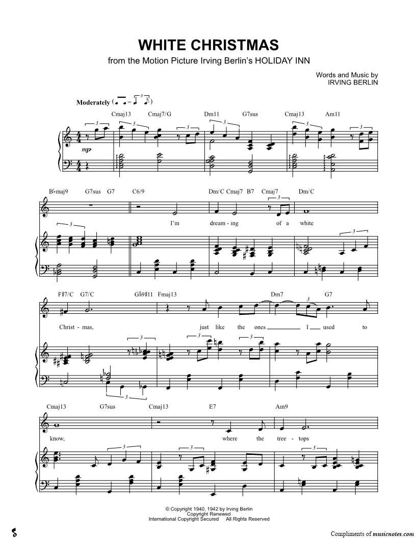 I'm dreaming of a white Christmas, just like the ones I used to know, where the treetops glisten and children listen to hear sleigh bells in the snow. |