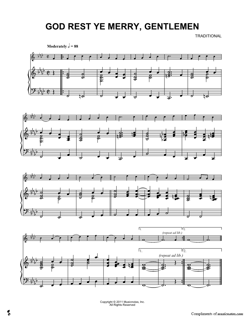 God Rest Ye Merry, Gentlemen - Piano Accompaniment |