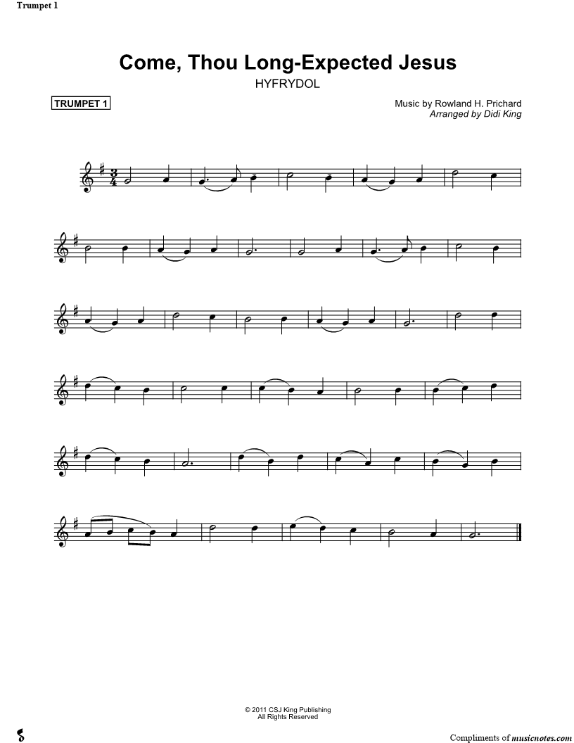 Come, Thou Long- Expected Jesus - Trumpet 1 (Brass Quartet) |