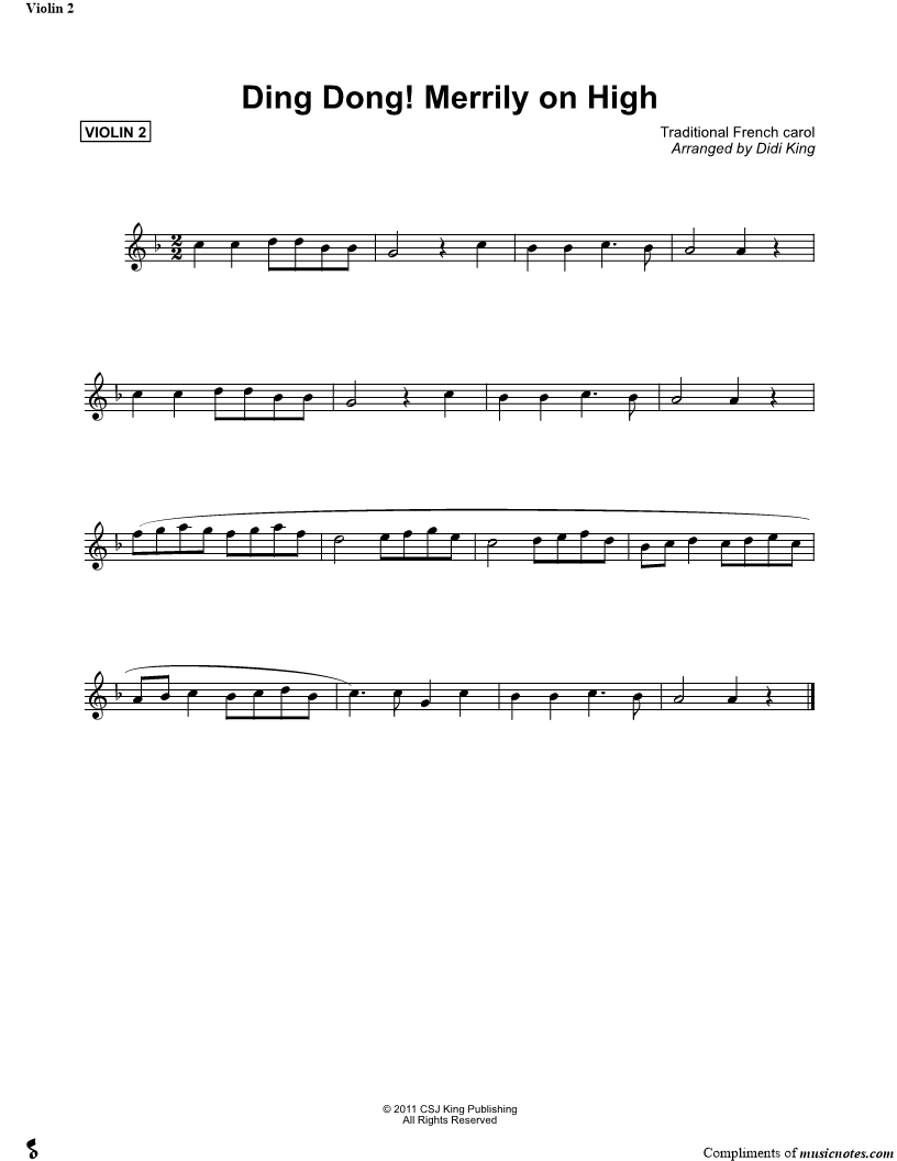Ding! Dong! Merrily on High - Violin 2 (String Quartet) |