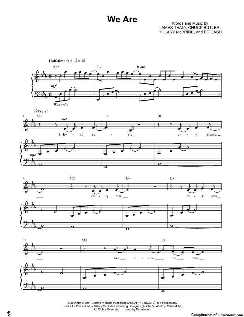 Ev'ry secret, ev'ry shame, ev'ry fear, ev'ry pain live inside the dark, but that's not who we are. |
