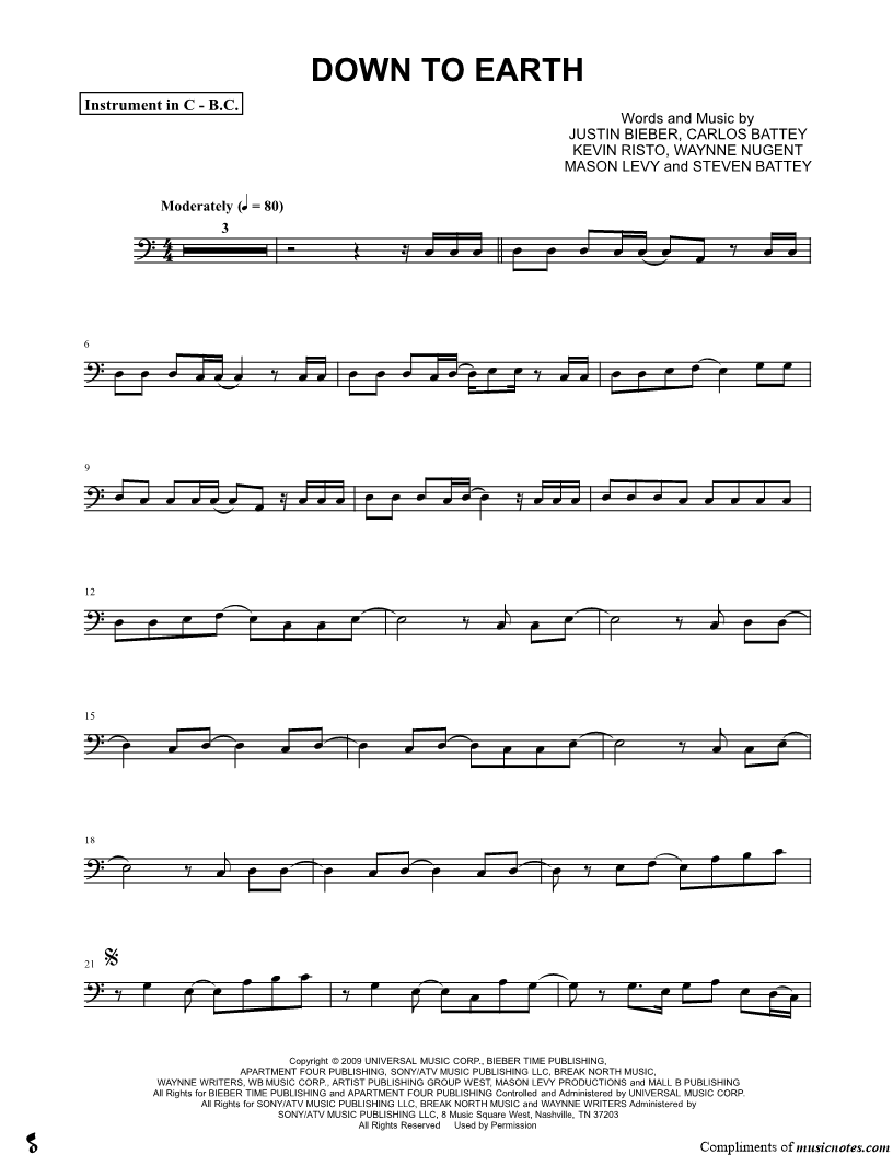 Down To Earth - Bass Clef Instrument |