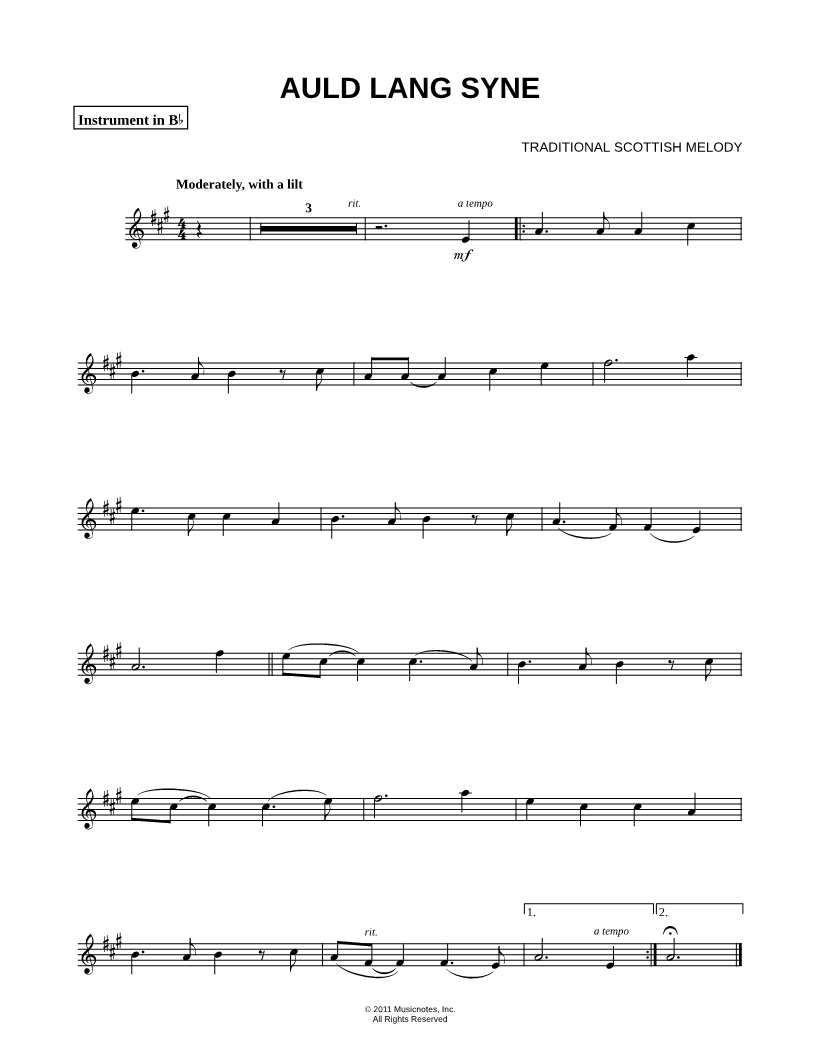 Bb Instrument, range: E4-A5 (Clarinet, Soprano Saxophone, Trumpet or Tenor Saxophone) | |
