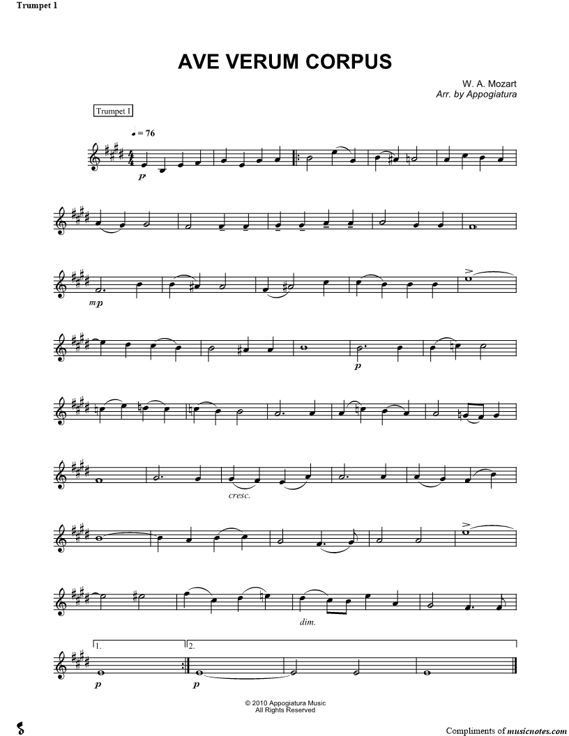 Ave verum corpus, K. 618 - Trumpet 1 (Brass Quartet) |