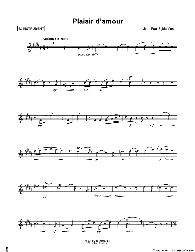 Plaisir d'Amour - Bb Instrument |