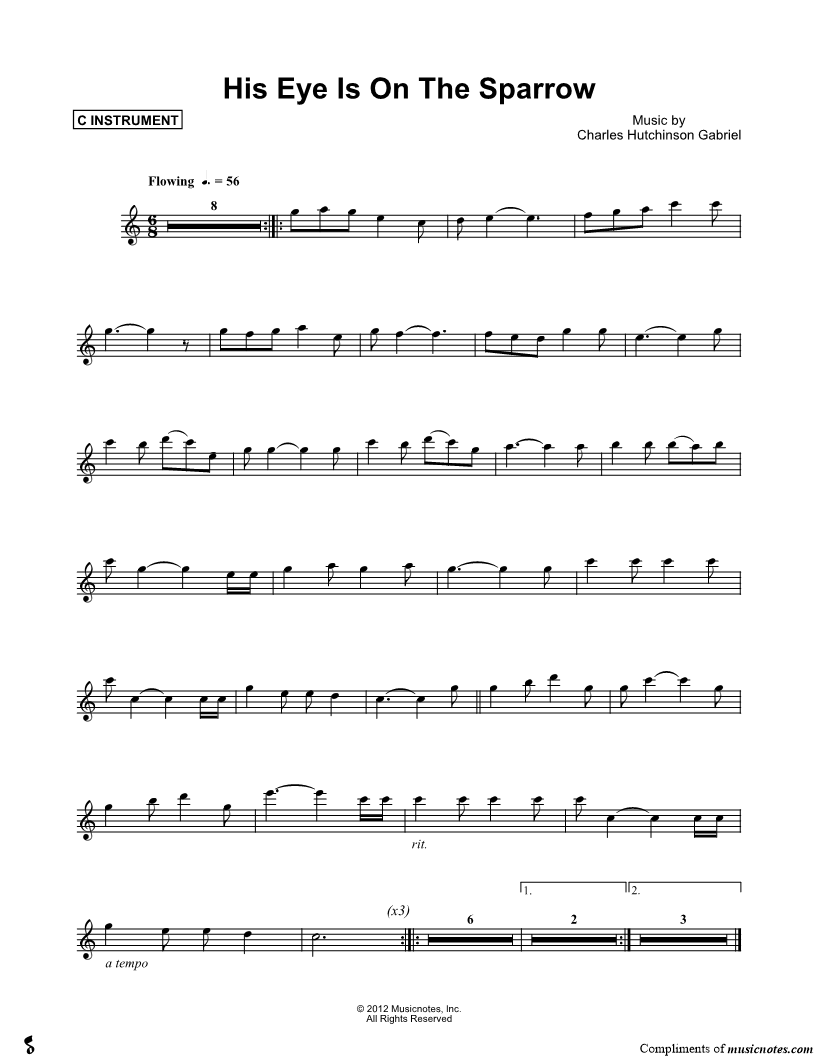 His Eye Is on the Sparrow - C Instrument |
