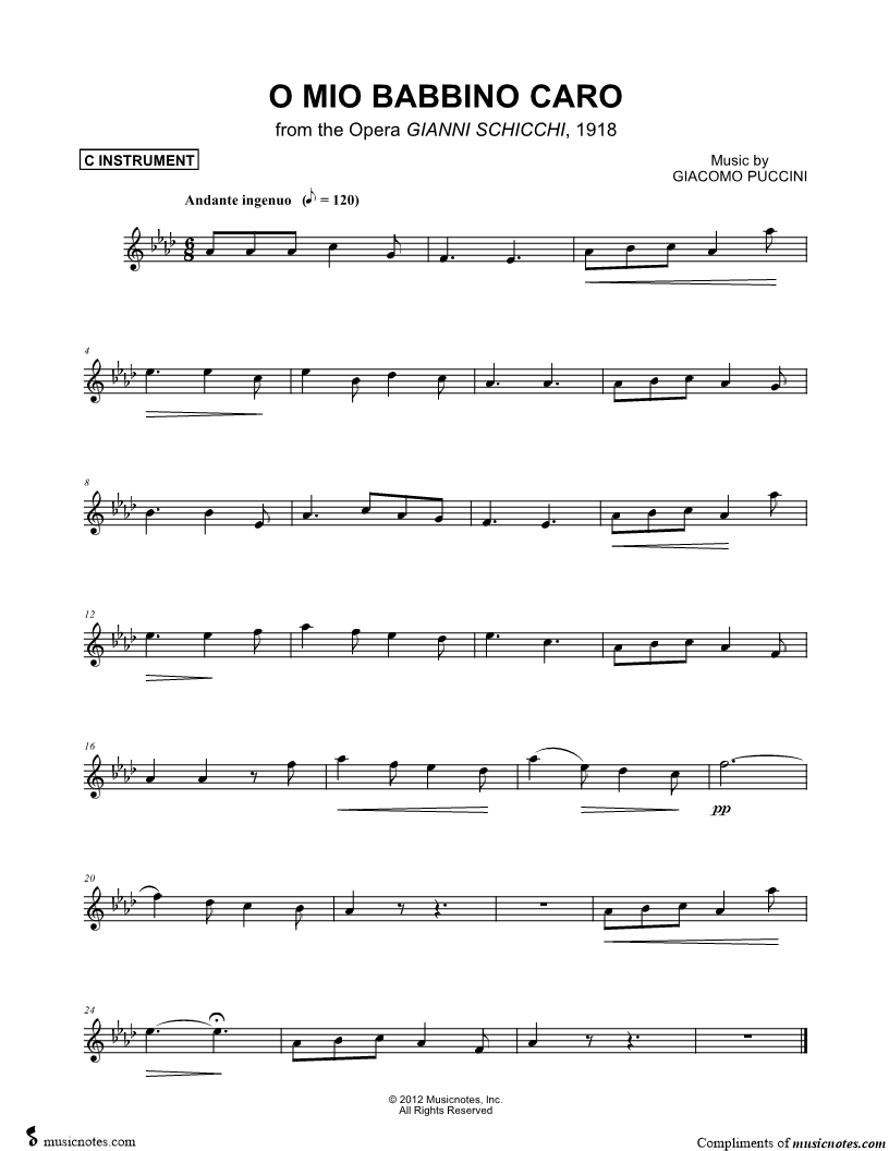 Gianni Schicchi: "O mio babbino caro" - C Instrument |