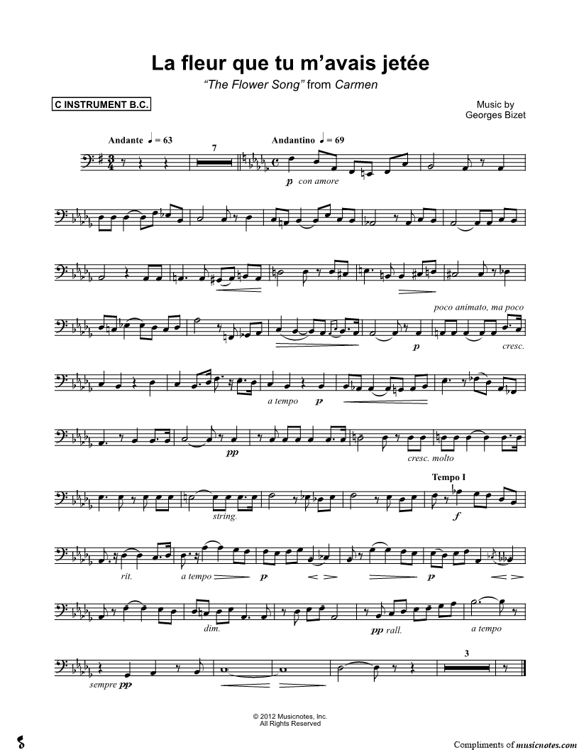 The Flower Song - Bass Clef Instrument & Piano La fleur que tu m'avais jetée