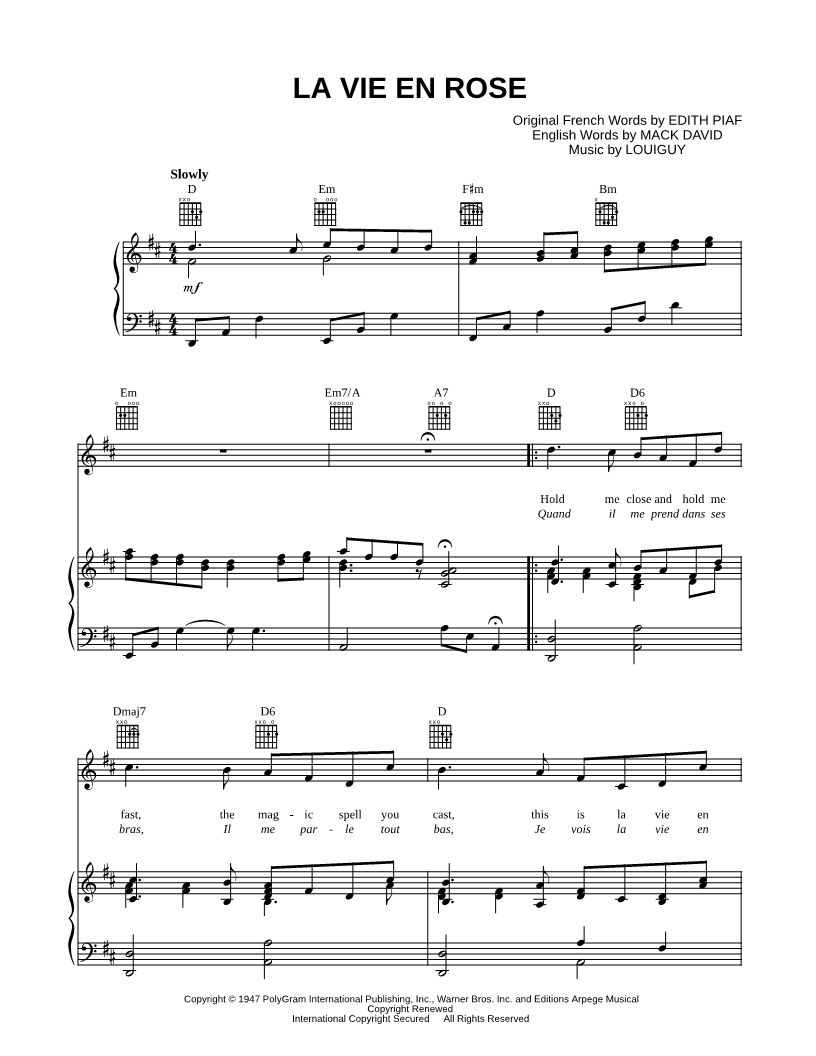Hold me close and hold me fast, the magic spell you cast, this is la vie en rose. |
